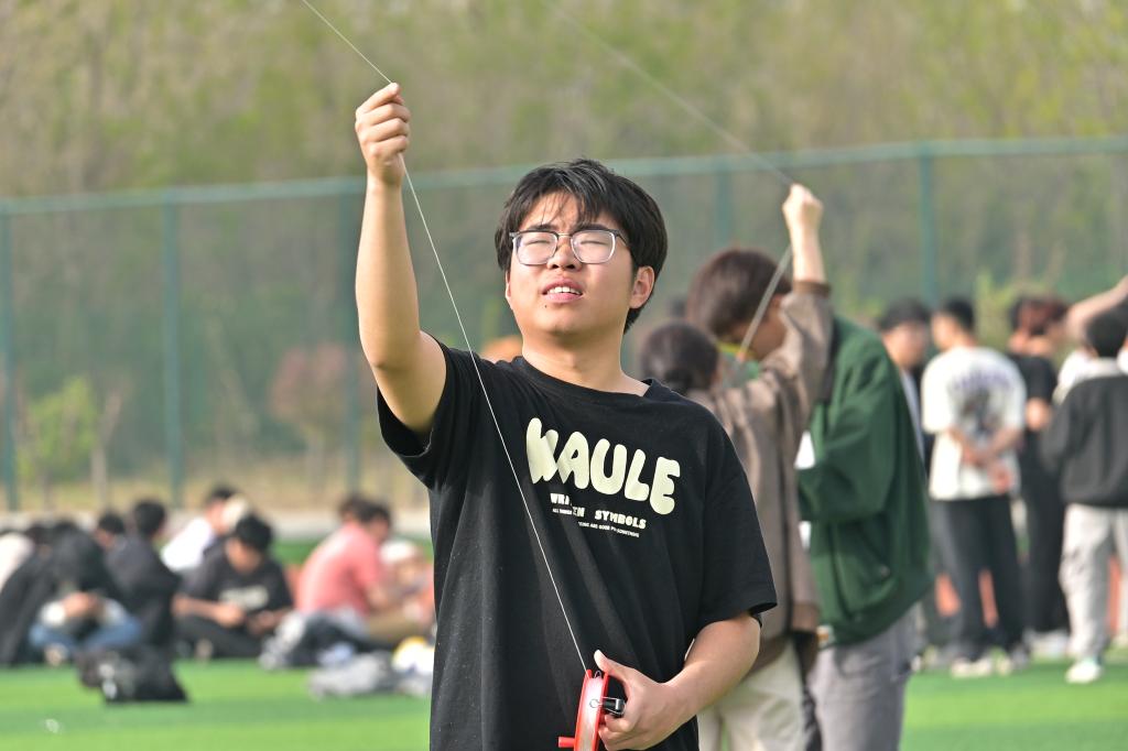 在紧张刺激的放飞比赛环节,参赛团队成员分工明确,助跑、起飞、放线一气呵成,高超的放飞技术让观众与裁判惊叹,良好的团队协作精神也在灿烂的春光熠熠生辉,绿茵场上满是欢声笑语,处处洋溢着青春气息。